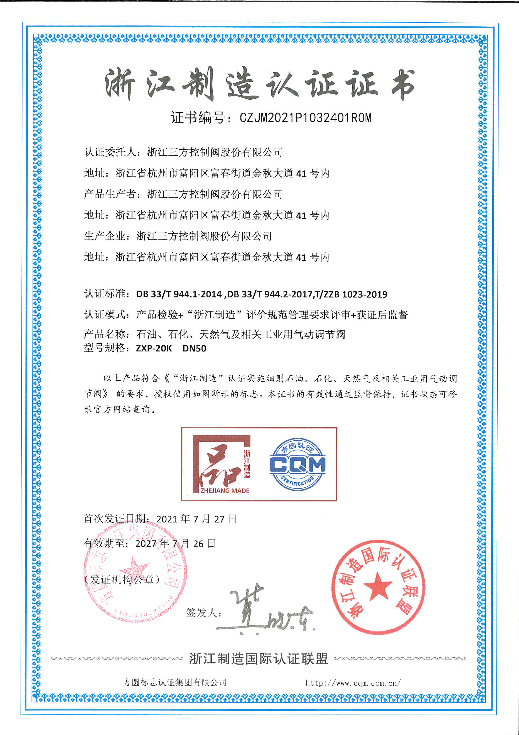 2015年批準(zhǔn)設(shè)立浙江省三方控制閥研究院,同年設(shè)立省級(jí)博士后工作站