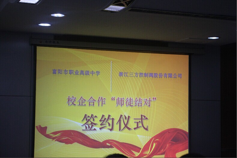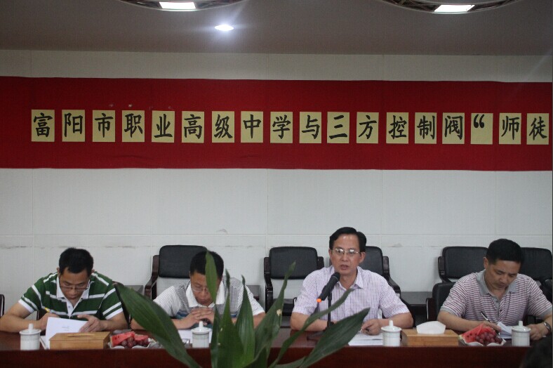 作為校企合作的有益探索,7月4日下午富陽(yáng)職業(yè)高級(jí)中學(xué)教師來(lái)我公司與熟練車(chē)工技師舉行 “師徒結(jié)對(duì)”簽訂儀式。