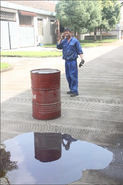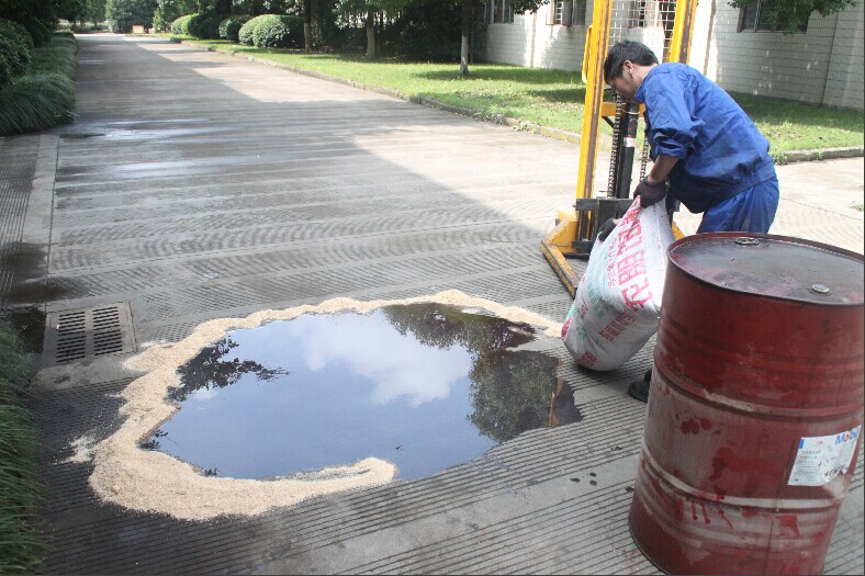 3. 應(yīng)急救援人員立即拿來應(yīng)急物資,對泄露廢油進行處理,用木屑設(shè)置屏障攔截,防止污染面擴大或進入下水道,并在圍堰內(nèi)均勻灑上木屑吸附。