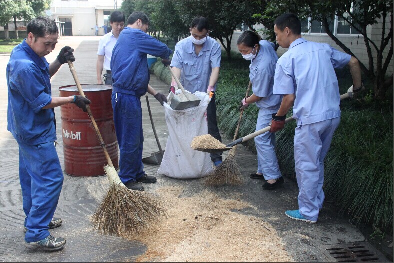 4. 將木屑收集,用布擦掉地上的油,將受污染物品等集中裝入塑料袋。