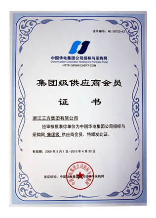浙江三方集團(tuán)有限公司經(jīng)中國華電集團(tuán)公司招標(biāo)與采購網(wǎng)審核批準(zhǔn)成為中國華電集團(tuán)公司招標(biāo)與采購網(wǎng)供應(yīng)商會員。