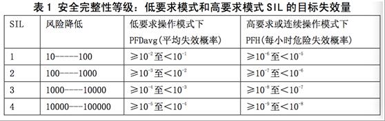 IEC61508將SIL劃分為4級,即SIL1,SIL2,SIL3和SIL4。安全相關(guān)系統(tǒng)的